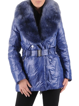 Kurtka zimowa damska, beżowa, pikowana kurtka z futerkiem przy kapturze, duże rozmiary 38939