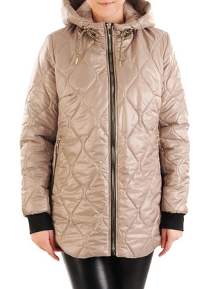 Beżowa kurtka damska z bawełny, z kapturem i ściągaczem – lekka kurtka wiosenna z kieszeniami 39870