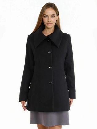 Płaszcz damski zimowy z dodatkiem wełny, czarny płaszcz z modnym, dużym kołnierzem, duże rozmiary 18243