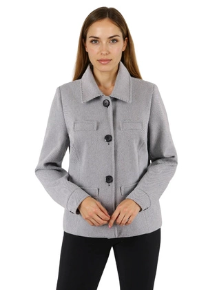 Płaszcz damski z dodatkiem wełny, przejściowy, elegancki, szary płaszcz z dużym wykładanym kołnierzem, boczne kieszenie 29011