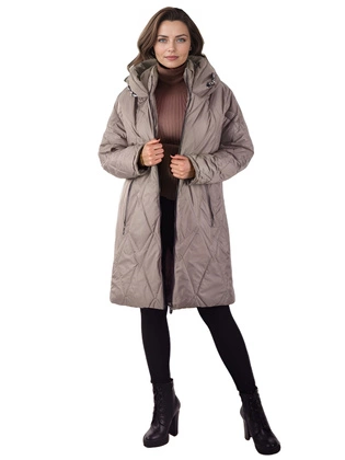 Kurtka damska beżowa zimowa – pikowana, matowa tkanina, kaptur i futerko odpinane 40642