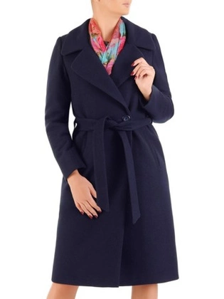 Płaszcz damski czarny, elegancki płaszcz z kołnierzem, długi, klasyczny fason wiązany w pasie 33987
