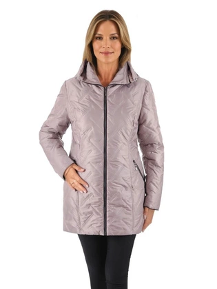 Kurtka damska przejściowa, pikowana kurtka z odpinanym kapturem w kolorze szarym 39366