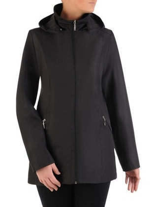Płaszcz damski, elegancki, czarny płaszcz przejściowy z kołnierzem, wiązanie w pasie, kieszenie 27226