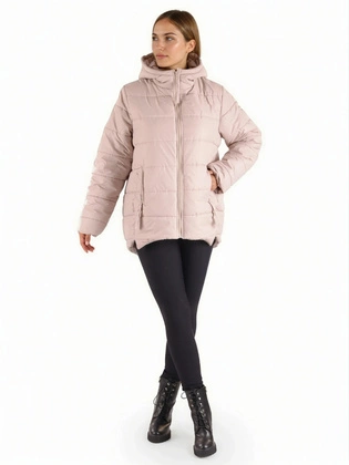 Kurtka damska beżowa zimowa – pikowana, matowa tkanina, kaptur i futerko odpinane 40642