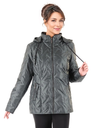 Kurtka damska przejściowa, pikowana kurtka z odpinanym kapturem w kolorze zielonym 39364