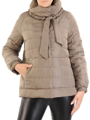 Kurtka damska przejściowa, zielona kurtka pikowana z kapturem, wydłużony tył 27668