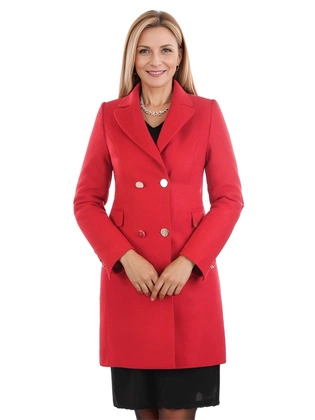 Czarny płaszcz damski - klasyczny fason z ozdobnymi guzikami, idealny na jesień i zimę 40802