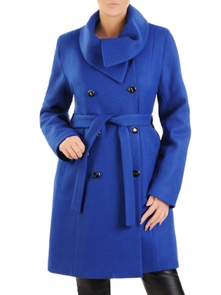 Płaszcz zimowy damski, dwurzędowy chabrowy płaszcz z oryginalnym kołnierzem, zapinany na guziki, pasek, duże rozmiary 34113