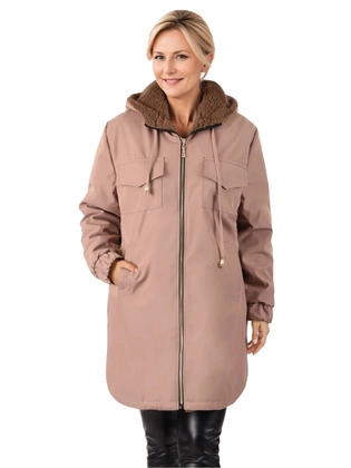 Kurtka damska, beżowa kurtka przejściowa z odpinanym kapturem 39317