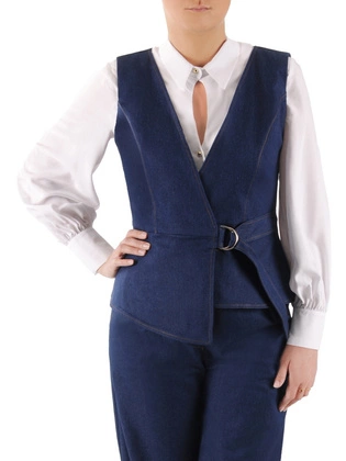 Jeansowa kamizelka damska plus size z ozdobnym zapięciem 38758