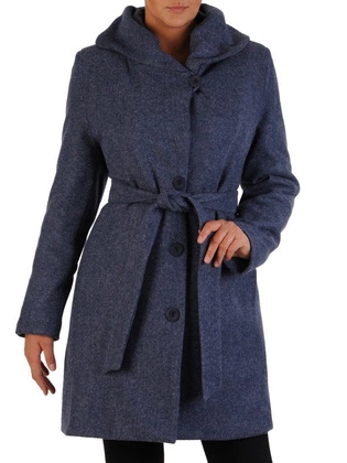 Płaszcz damski zimowy, granatowy płaszcz zapinany na guziki z modnym kapturem, duże rozmiary 22325