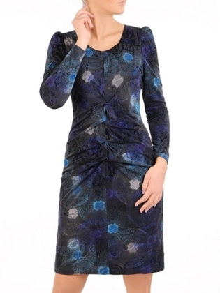 Sukienka damska 17566, jesienna kreacja z ozdobnym dekoltem.