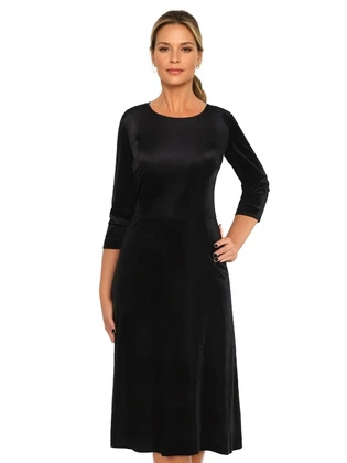 Rozkloszowana sukienka z aksamitu, kreacja w kolorze czarnym 18893