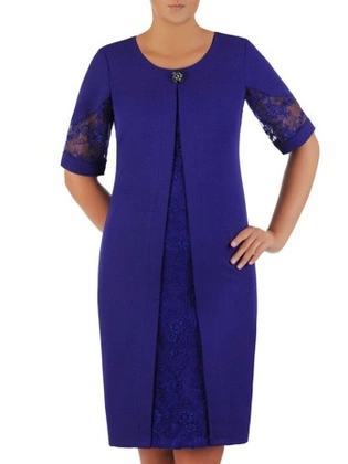 Sukienka z koronkową wstawką, chabrowa kreacja wyszczuplająca 21772