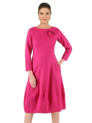 Połyskująca sukienka na wesele midi z dekoltem w serek i ozdobnym marszczeniem 38517