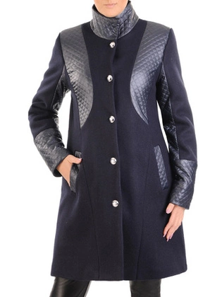 Płaszcz damski zimowy, granatowy płaszcz z dodatkiem wełny, wstawki pikówka, ekoskóra, duże rozmiary 34119