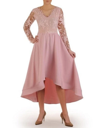 Trapezowa sukienka z koronki, kreacja z wycięciem na plecach 23009