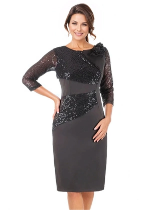 Sukienka damska 14333, czarna kreacja z koronkowymi rękawami.
