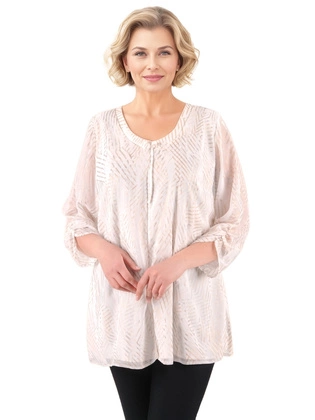 Elegancka tunika damska – wyszczuplający fason z modnym wiązaniem przy dekolcie 39572
