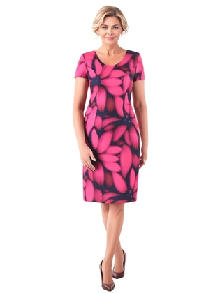 Sukienka wyjściowa midi z wiskozy, rozkloszowana w różowe wzory – elegancka sukienka na lato 39872