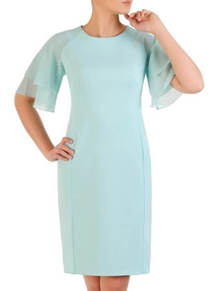 Sukienka na wesele, miętowa kreacja z falbanami 26635