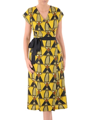 Wyszczuplająca sukienka na lato, kobieca kreacja w modnym fasonie i wiązaniem w pasie 38360