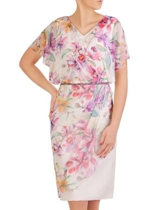 Sukienka damska w kwiaty, kreacja z szyfonu i tkaniny 29231