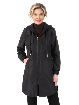 Kurtka damska przejściowa, czarna kurtka wiosenna z kapturem 39344