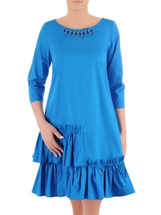 Sukienka letnia, niebieska kreacja wyjściowa z asymetrycznymi falbanami 38066