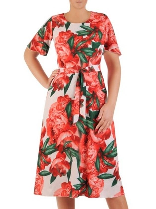 Sukienka z paskiem, zwiewna kreacja w kwiaty 21279.