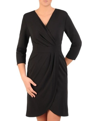 Czarna sukienka z efektownym dekoltem, prosta kreacja wizytowa 18899