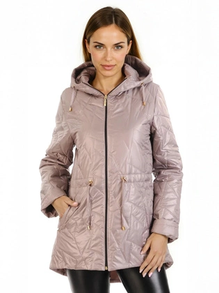 Kurtka damska przejściowa, pudrowa, pikowana kurtka z kapturem, ściągacz w pasie, duże rozmiary 33100