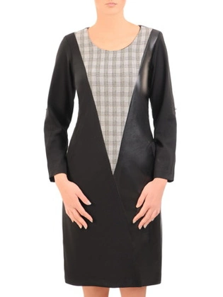 Elegancka sukienka z dodatkiem skóry ekologicznej, kreacja wyszczuplająca 30812