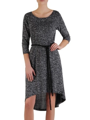 Asymetryczna sukienka, dzianinowa kreacja z modnym paskiem 19515