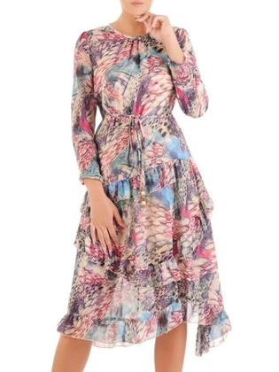 Sukienka z szyfonu, zwiewna kreacja w luźnym fasonie 34245