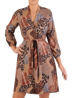 Sukienka kopertowa, asymetryczna kreacja z falbanami 32523