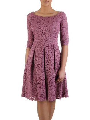 Sukienka damska, pudrowa kreacja z ozdobnymi plisami 25996