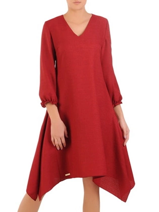 Asymetryczna sukienka z modnym wykończeniem rękawów 31429