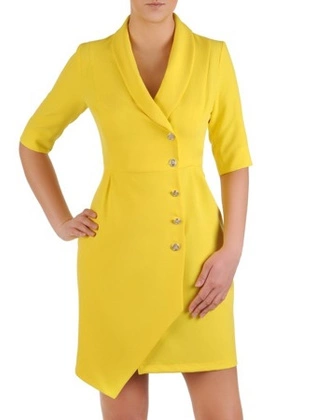 Asymetryczna sukienka z kopertową zakładką, kreacja z guzikami 25772