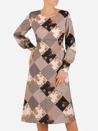 Wzorzysta sukienka z półgolfem, kreacja w modnych kolorach 25074