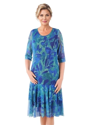 Sukienka letnia plus size, zwiewna kreacja midi z ozdobnymi falbanami 38365