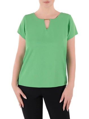 Amarantowa bluzka damska z ozdobnie wyciętym dekoltem 38409