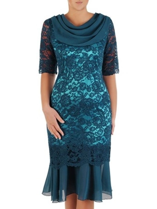 Sukienka z ozdobnym szalem, szmaragdowa kreacja z koronki 22306