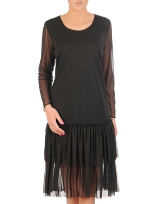 Czarna, dzianinowa sukienka z tiulową spódnicą i falbanami 32101