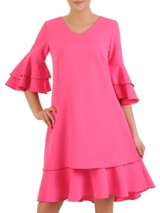 Amarantowa, trapezowa sukienka z falbanami 29155