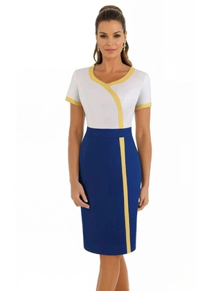 Sukienka z kontrastowym kołnierzykiem, jesienna kreacja z modnymi wstawkami 34406