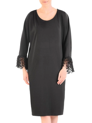 Prosta sukienka z dzianiny z ozdobnymi rękawami 34911