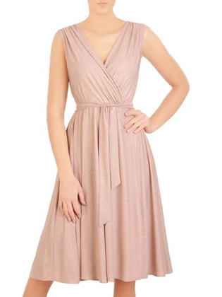 Pudrowa sukienka z kopertowym dekoltem 36381