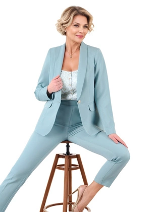 Żakiet damski, elegancki, seledynowy żakiet zapinany na ozdobny guzik 39661